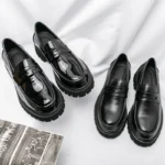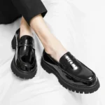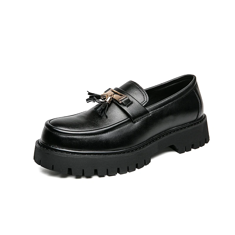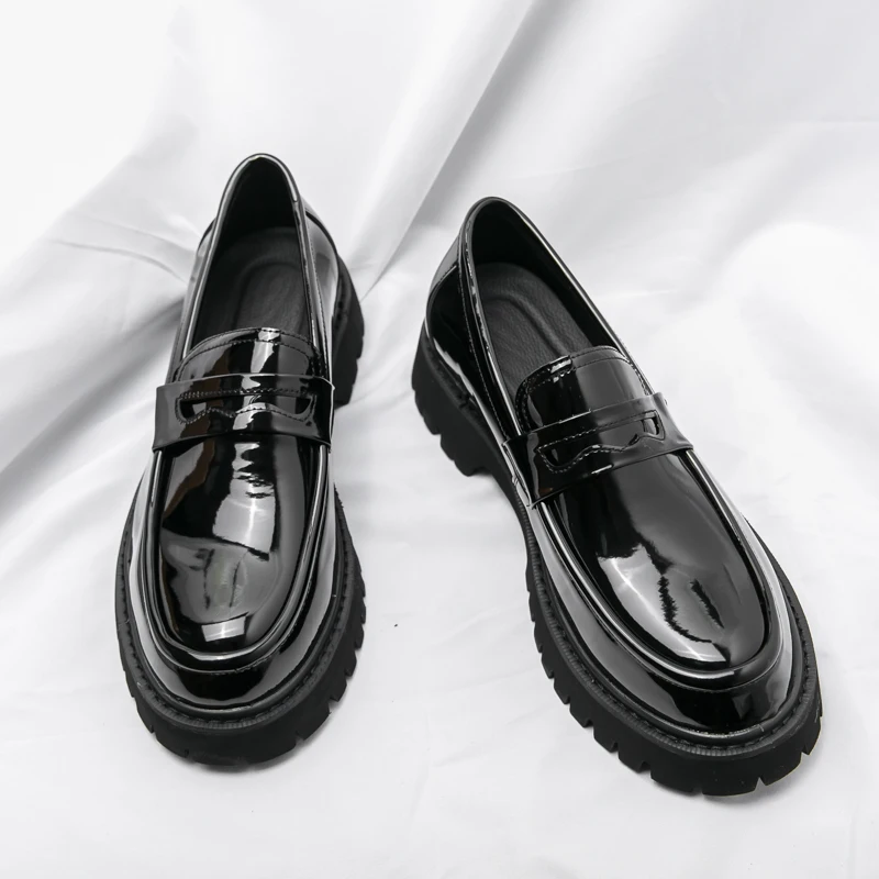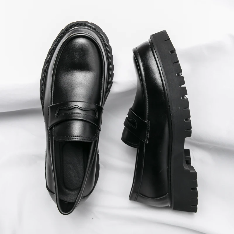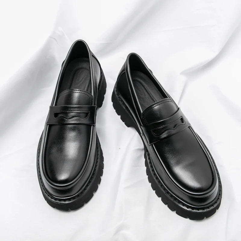 New Platform Shoes Loafers Shoes Men Thick-soled Wedding Shoes Black Formal Business Shoes Slip-on Leather Increase Casual Shoes