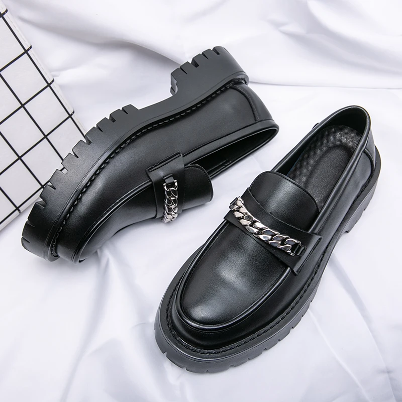 Home Shop Footwear New Platform Shoes Loafers Shoes Men Thick-soled Wedding Shoes Black Formal Business Shoes Slip-on Leather Increase Casual Shoes