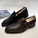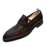 Home Shop Footwear Luxury Men’s Genuine Leather Dress Shoes Crocodile Print Wedding Loafers Double Buckle Business Office Formal Slip-On Shoes