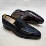 Handmade Leather Tassel Loafers for Men – Classic Slip-On Dress Shoes with Black Sole for Business & Driving
