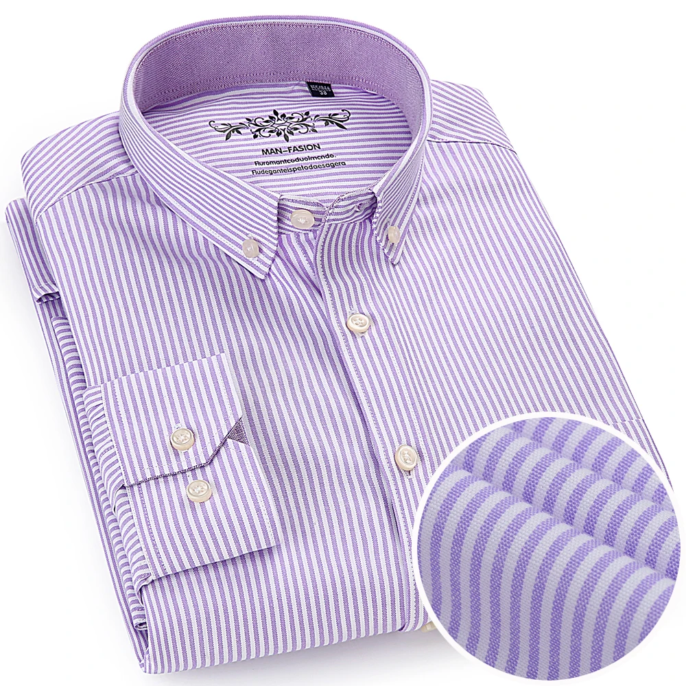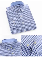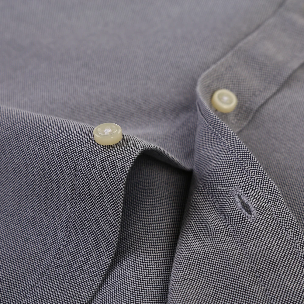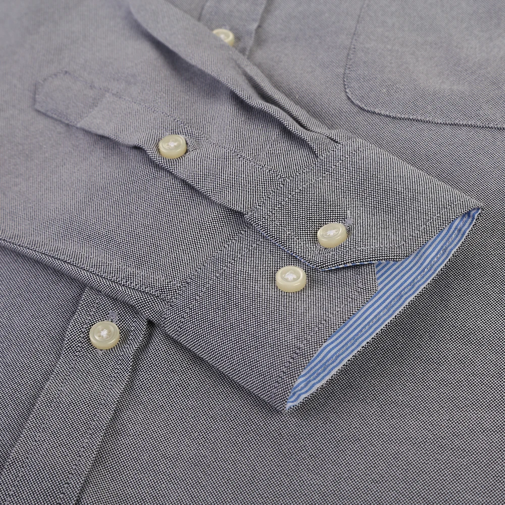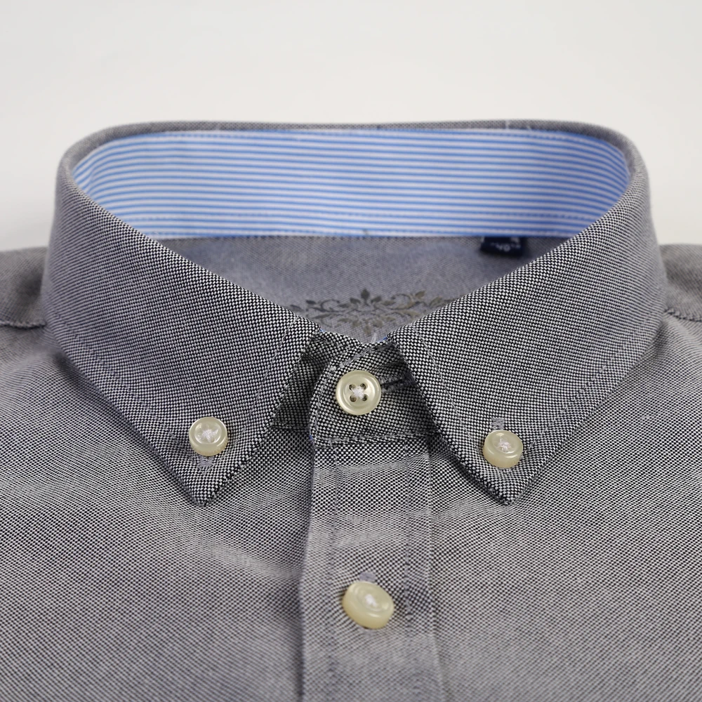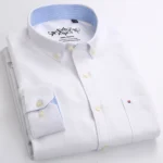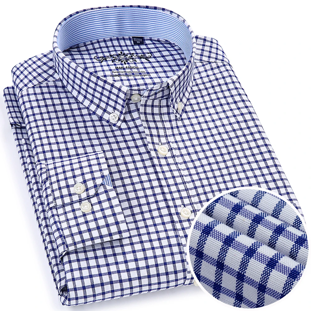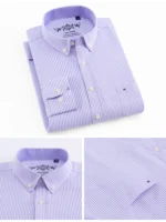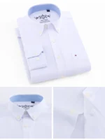 Men’s Fashion Long Sleeve Oxford Work Shirt Single Patch Pocket Simple Design Embroidered Regular-fit Casual Button-down Shirts